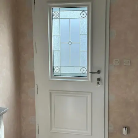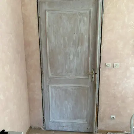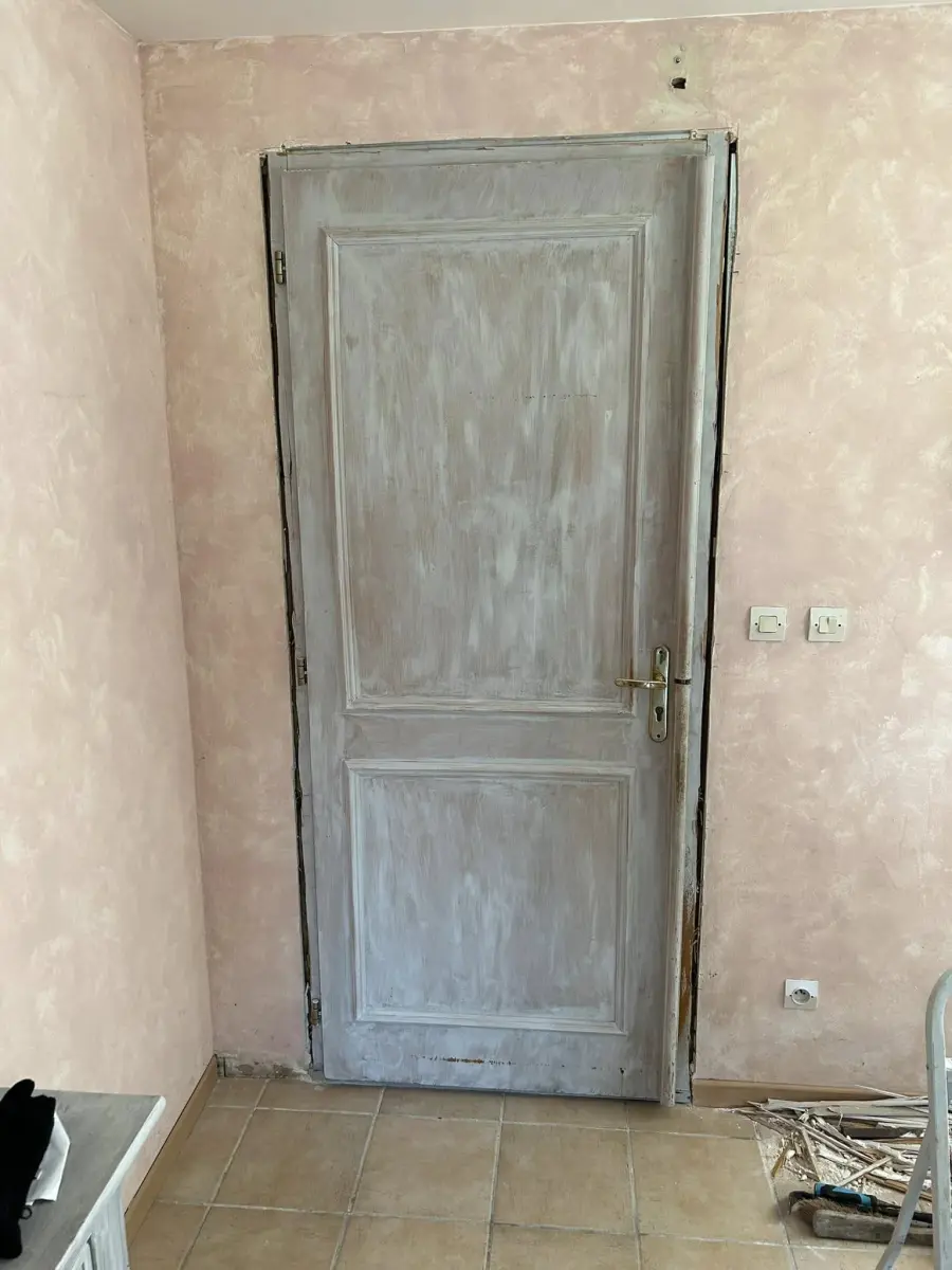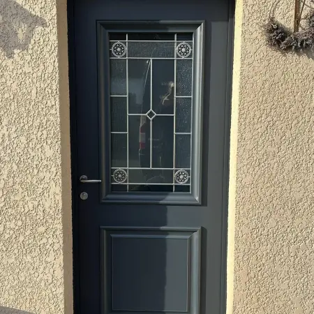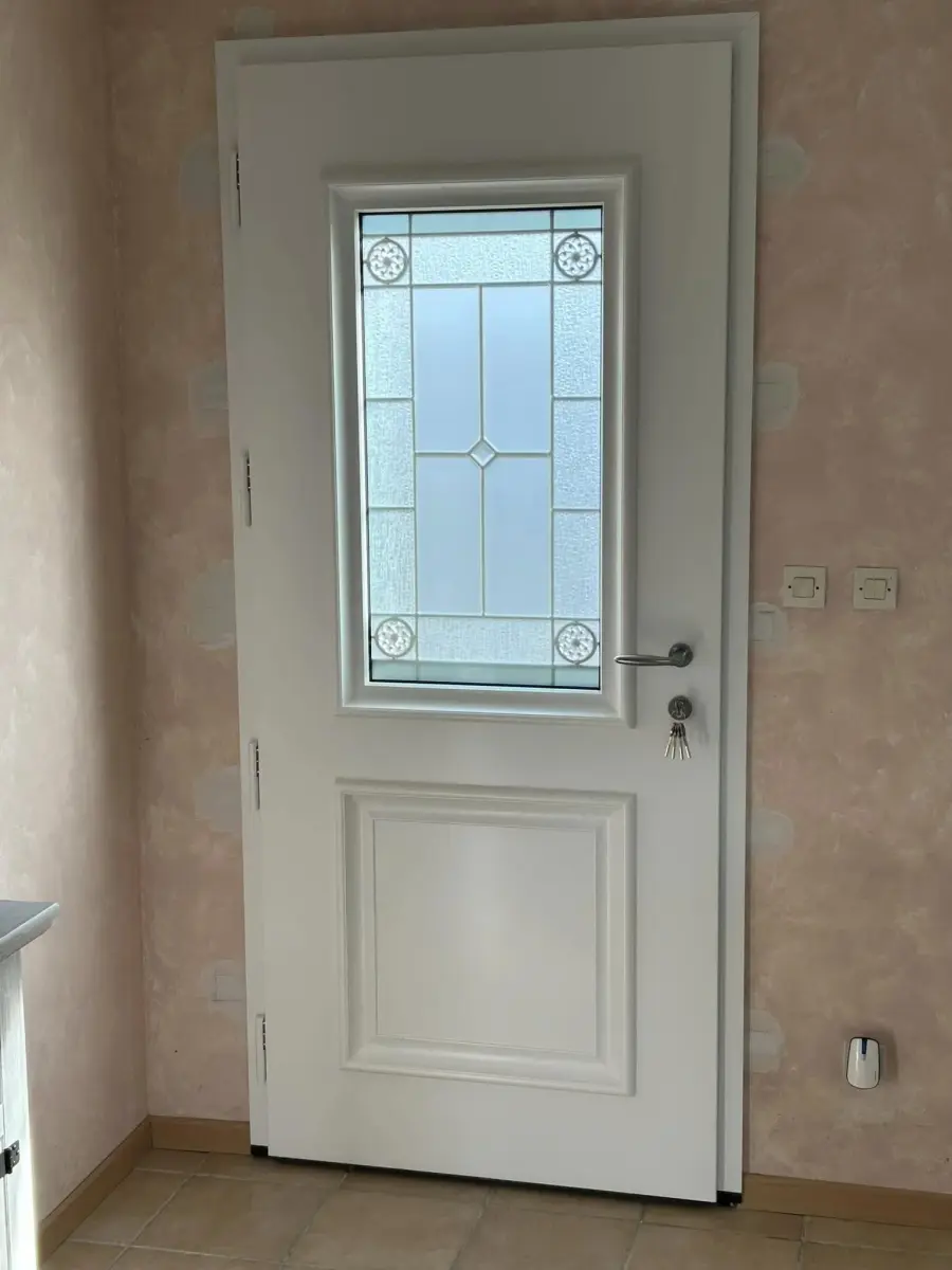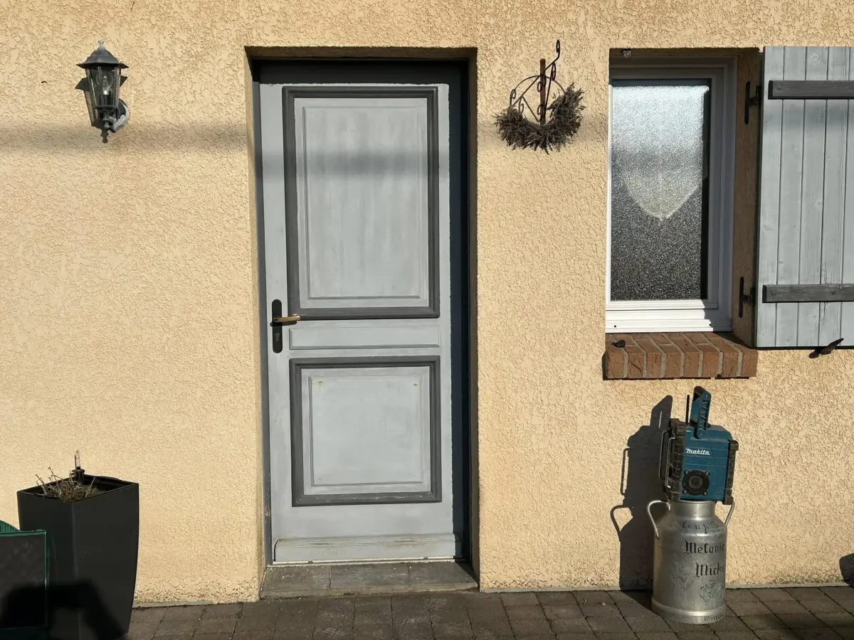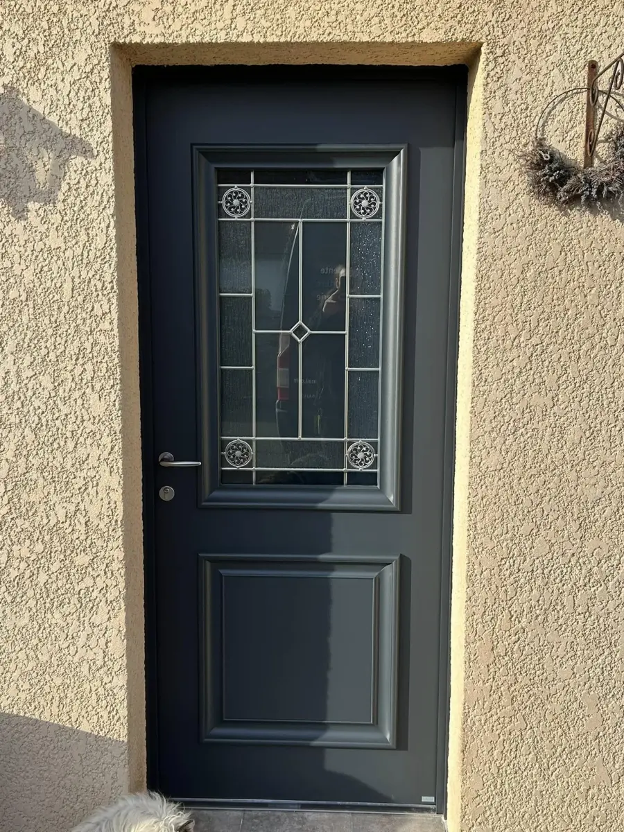 Changement d’une ancienne porte bois pour une porte d’entrée en aluminium Bel’M, modèle Akimel.